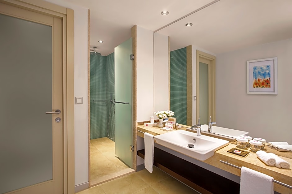 Offering free toiletries and bathrobes, this twin/double room includes a private bathroom with a shower, a hairdryer and slippers. The spacious air-conditioned twin/double room offers a flat-screen TV with satellite channels, soundproof walls, a mini-bar, a tea and coffee maker as well as pool views.